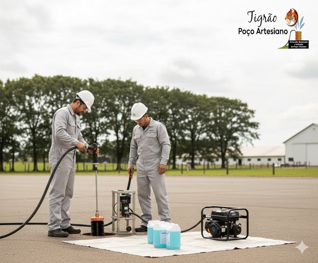 A limpeza e desinfecção de poços é fundamental para manter a qualidade da água e a segurança no consumo. A Tigrão Poços Artesianos realiza o serviço com técnicas adequadas, equipamentos profissionais e produtos certificados, eliminando impurezas, bactérias e resíduos acumulados. O processo melhora a vazão, previne contaminações e prolonga a vida útil do poço. Atendemos poços artesianos e semiartesianos em áreas urbanas e rurais, sempre seguindo normas técnicas e ambientais, garantindo água limpa, segura e confiável para diversos usos. Fale conosco agora mesmo ligue ou envie mensagem.